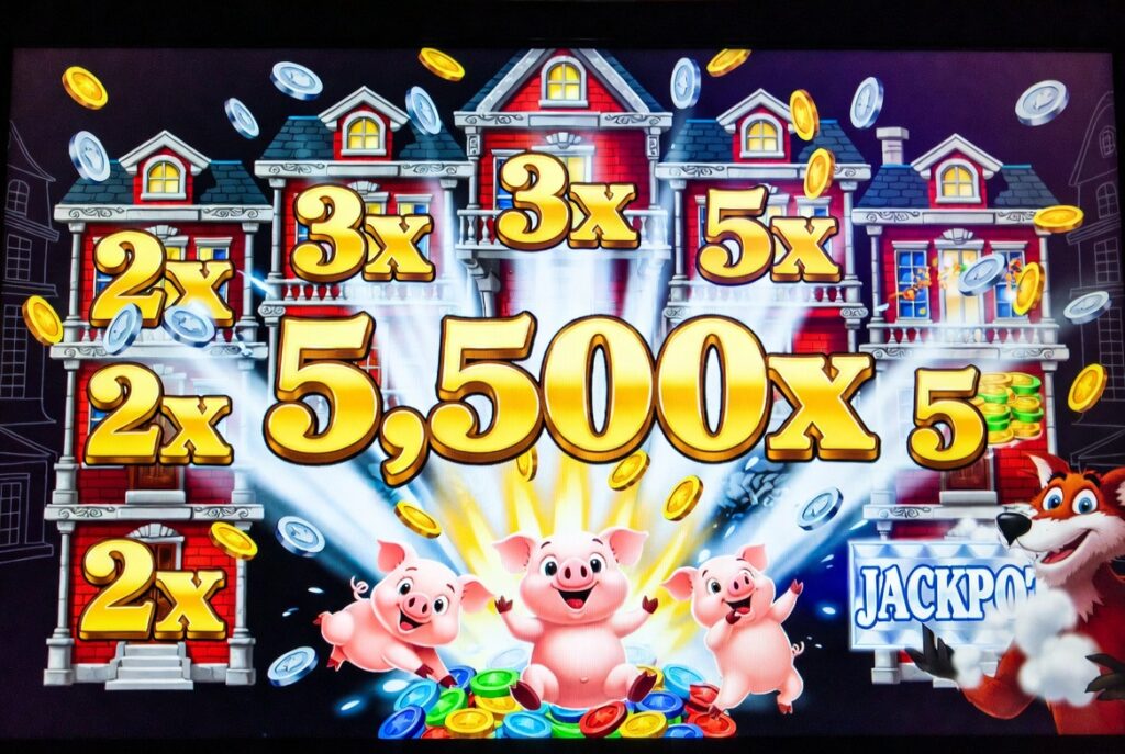 These bonuses are perfect for the Huff N More Puff Slot because they let you spin more, collect more Hard Hats, upgrade houses faster, and increase your chances of hitting the Grand Jackpot (up to 5,500x).